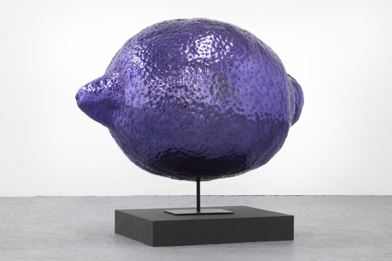 polyester resin, fiberglass, gold chrome plating anti-UV varnish, metal support acid burnishing. ed. of 6 + 2 AP 1/6, 76 × 70 × 70 cm