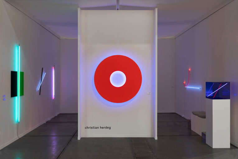 The play with opposites and contradictions makes Christian Herdeg’s works striking and beguiling: When light can be experienced spatially, geometric reduction meets coloured poetry and materiality meets immateriality.
