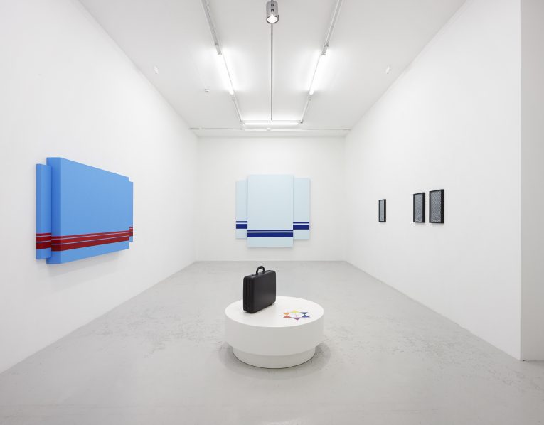 Sukzessive und wie eine Abfolge von Zeichen beschreiben die Werke der Ausstellung „Point Barre“ wie Räumlichkeit funktioniert: Ein simpler, in sich gedrehter Ledergürtel, wird zur dreidimensionalen Struktur eines Möbiusbandes ohne Vor- und Rückseite, ohne Anfang und ohne Ende. Die in der Ecke platzierte Schaumstoffrolle akzentuiert die drei Koordinaten des Raumes, während die Wandarbeit daneben sie mit ihren „3 axes 3 sphères“ bildlich veranschaulicht. Ein verchromter Sturzhelm spiegelt im Durchgang zwischen den Räumen die Architektur in seiner konvexen Oberfläche wider, während der wie beiläufig auf einem Sockel abgestellte